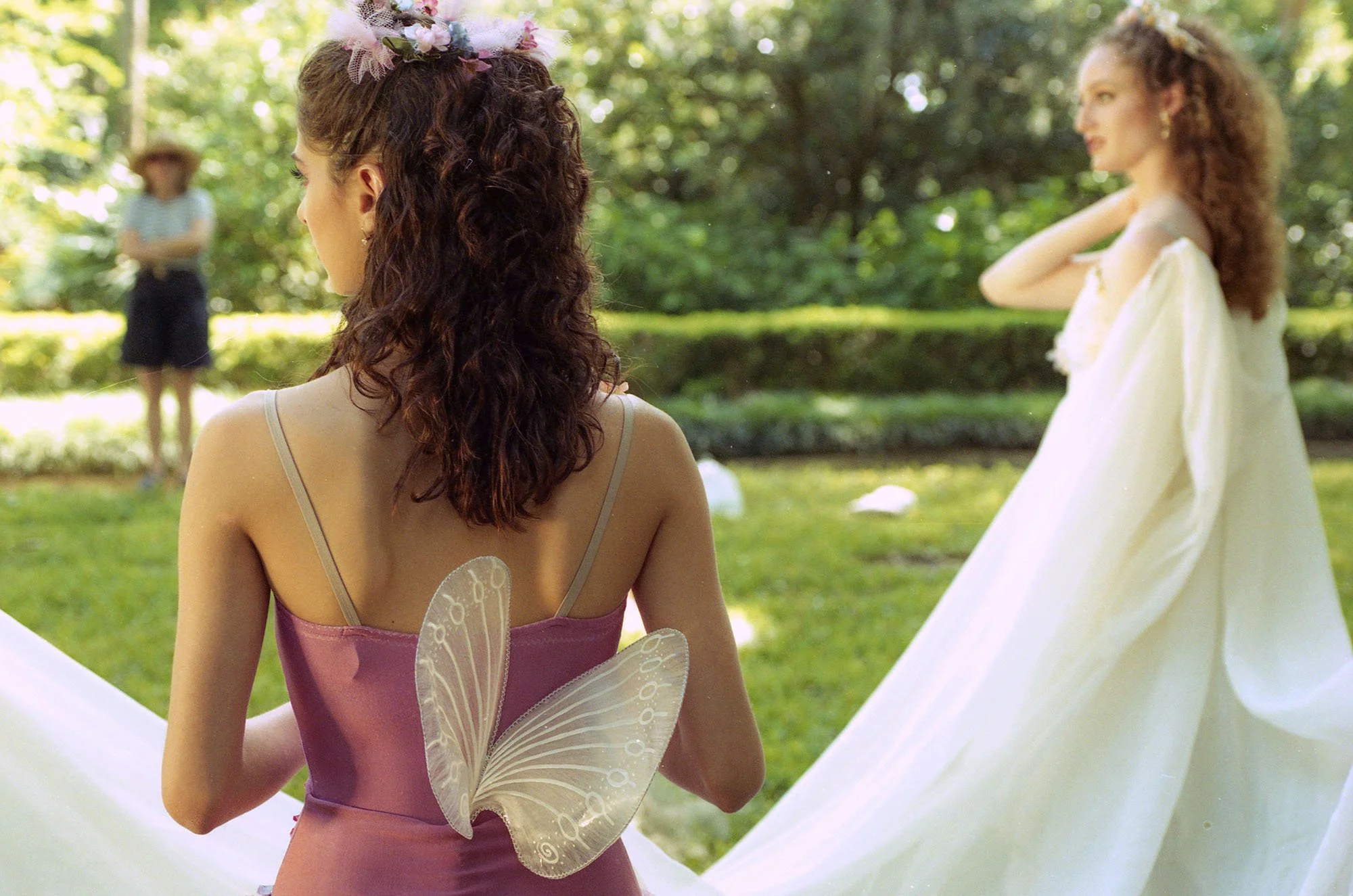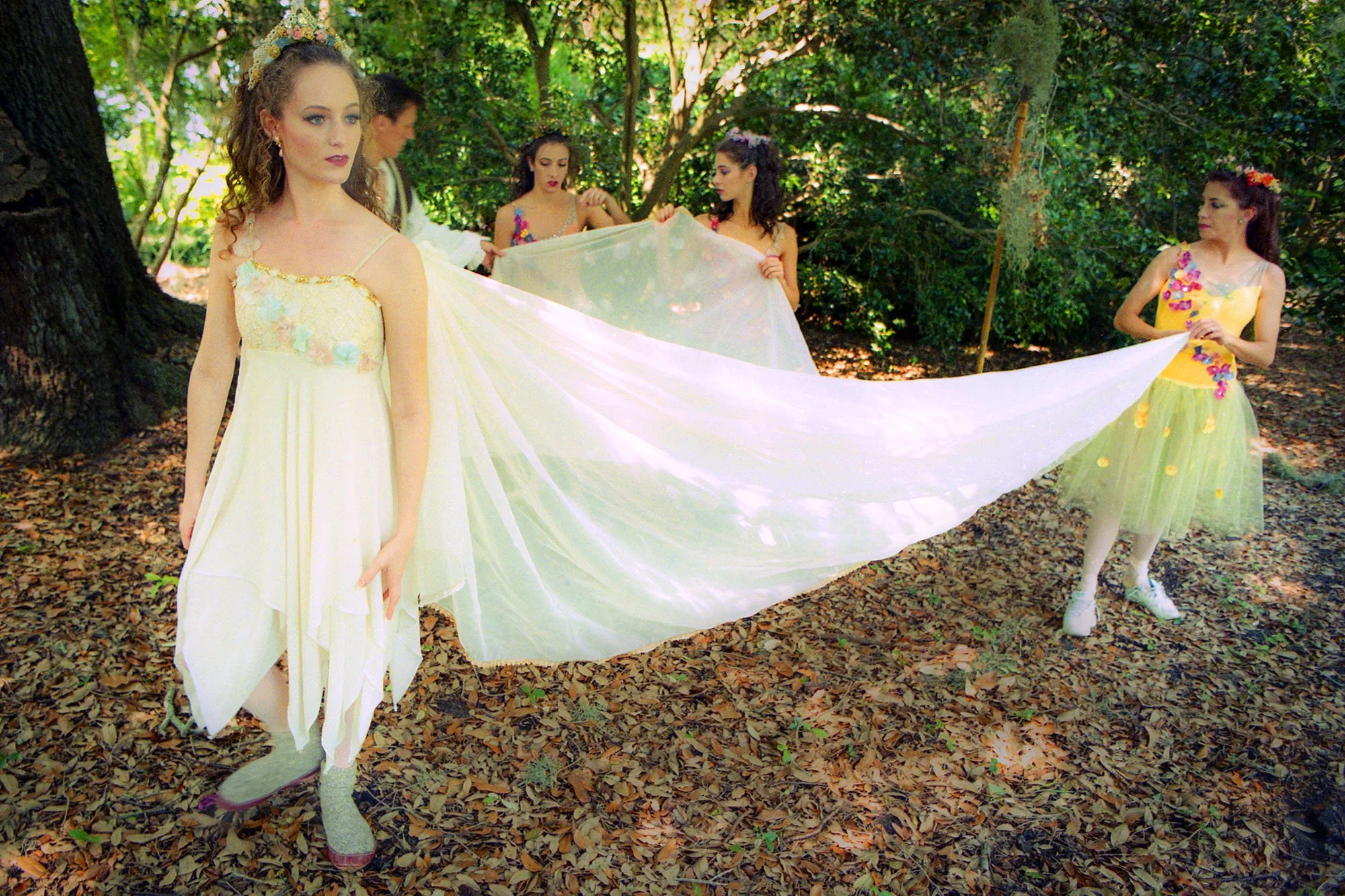 Even waiting, the dancers had a graceful presence. Lilyan Vigo, wearing tiny wings, and Jessica Rindone in a flowing white gown, were ready to portray characters from A Midsummer Night's Dream. In October, they will take the stage in these roles, but on this day they were dodging Spanish moss and climbing oak trees. The photo shoot is never as choreographed as a performance.