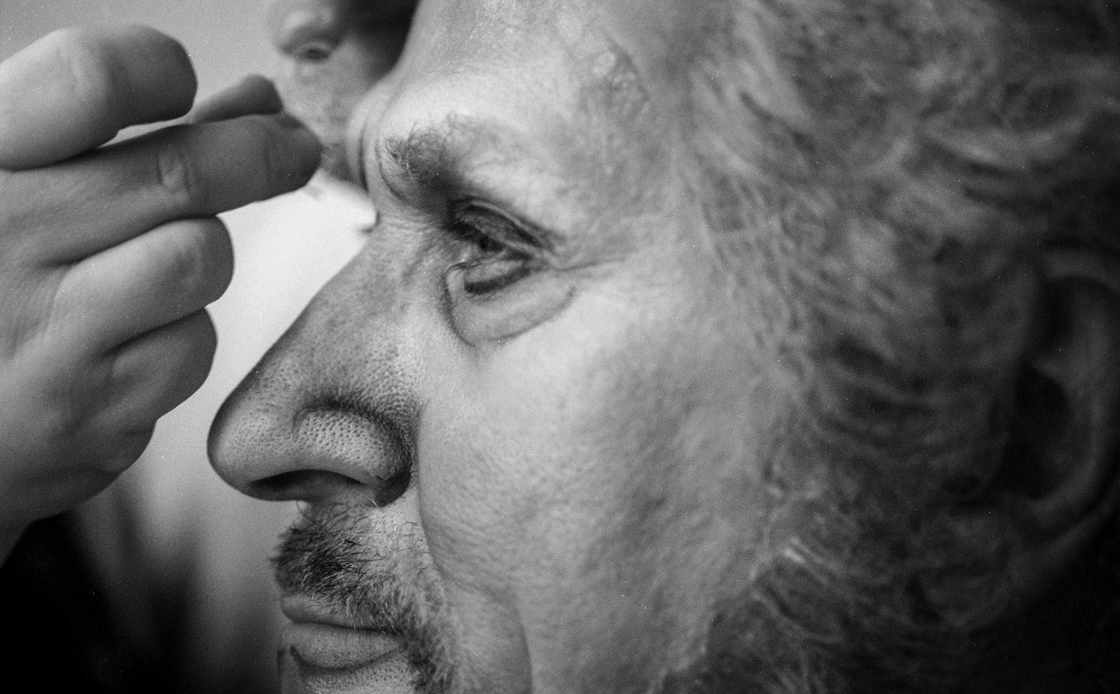 An outtake of Sherill Milnes during makeup. Photo by Tom Burton