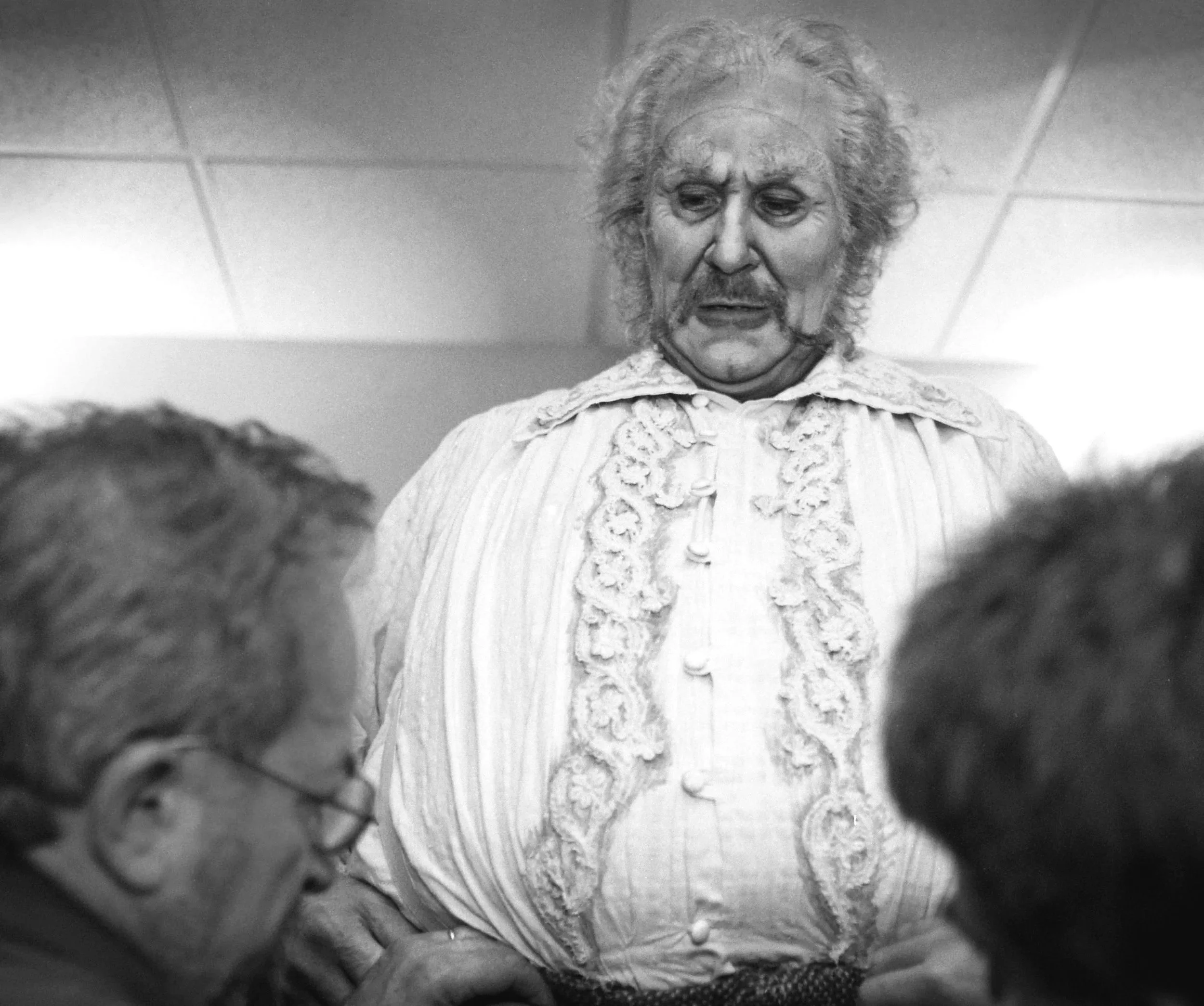 His endurance is tested further by the preparation time. Before a dress rehearsal this past week, Milnes spent 1 1/2 hours in his dressing room becoming Falstaff. Makeup and wig designer Susan Stone began by aging Milnes with makeup. Then costumer Caine explained the mechanics of the costume to dresser Don Emmerson. It takes a certain choreography for Milnes to even put on his pants, something that has to be done quickly during costume changes.