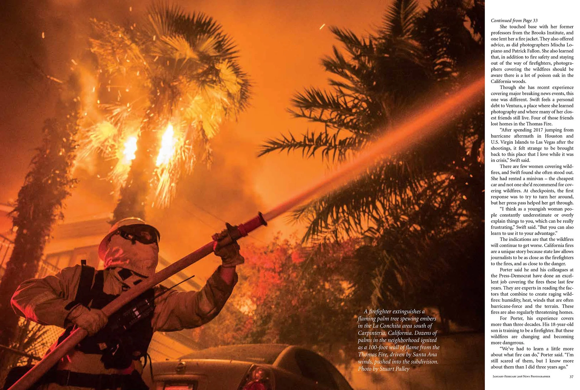With this preparation, it is easier to concentrate on photography because he can also work knowing the mindset of a firefighter, Palley said. He also earns the firefighters’ respect and is focused first on making sure he is not impeding their work.